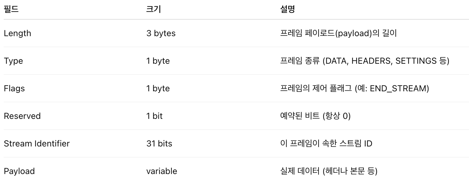 HTTP/2는 하나의 TCP 연결안에서 여러 개의 스트림을 관리하고 각 스트립은 여러 개의 프레임으로 구성됩니다.
